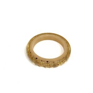 艶のあるバングルタイプで、光を受けるたびに内部のモチーフが浮かび上がり手元にさりげない華やかさを添えてくれます。